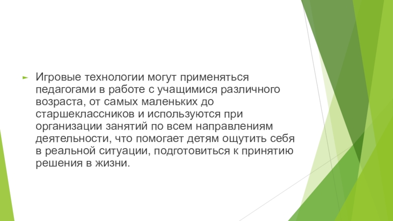 Слайд 8Игровые технологии могут применяться педагогами в работе с учащимися различного возраста,