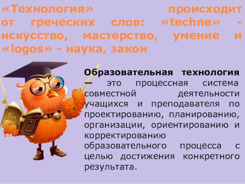 Образовательная технология — это процессная система совместной деятельности учащихся и преподавателя по проектированию, планированию, организации, ориентированию и корректированию образовательного процесса с целью достижения конкретного результата.
