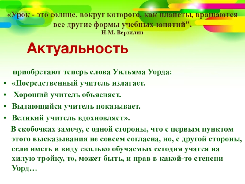 освободить время для творчества – использование готовых разработок по темам освобождает преподавателя от непродуктивной рутинной работы;