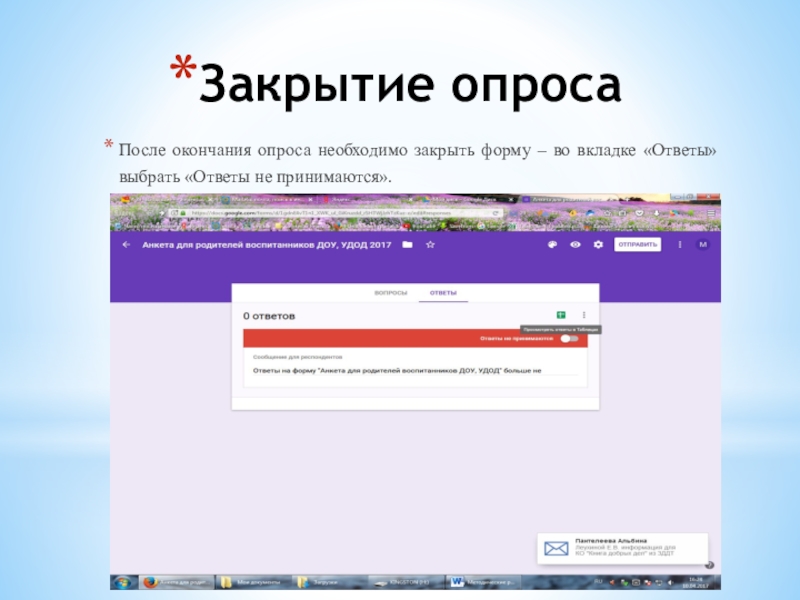 После окончания опроса необходимо закрыть форму – во вкладке «Ответы»
