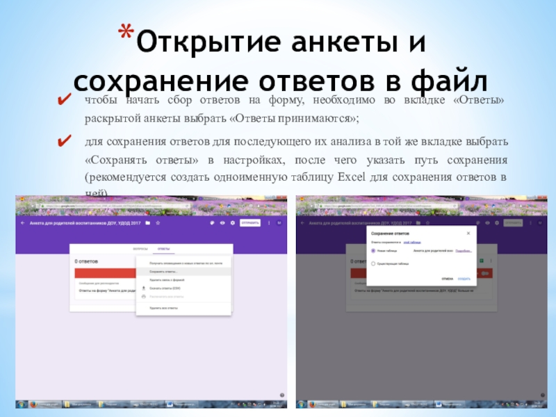 после его заполнения анкеты убедиться в успешном сохранении ответов в таблице, затем путем перехода «Ответы Удалить все ответы» вновь очистить форму сохранения.