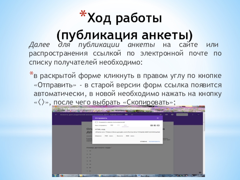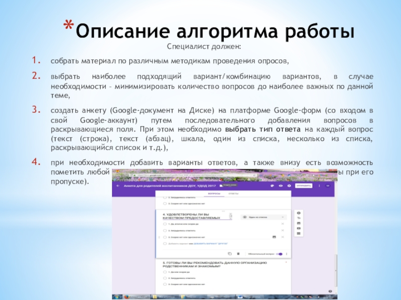 • способствовать созданию непосредственно анкеты (в данном примере – на платформе Google-форм),