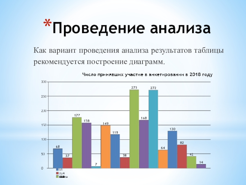 Как вариант проведения анализа результатов таблицы рекомендуется построение диаграмм.