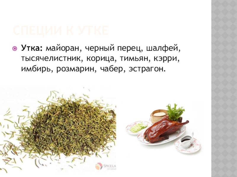 Слайд 4Специи к утке
