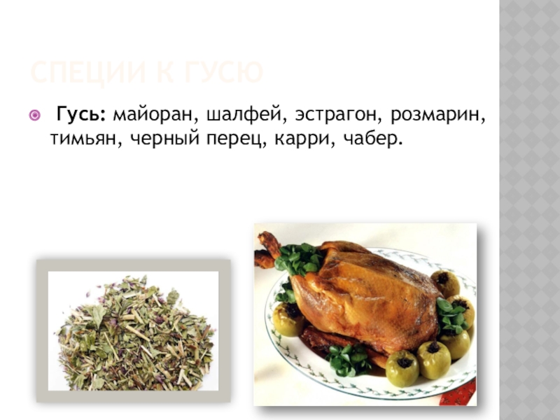 Слайд 5Специи к гусю
