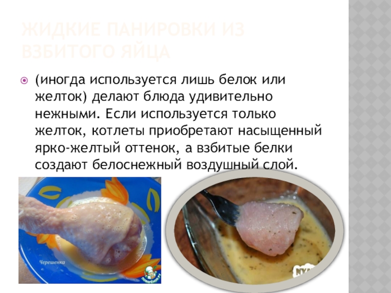 Слайд 14Жидкие панировки из взбитого яйца