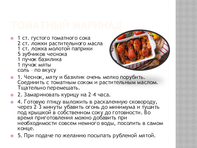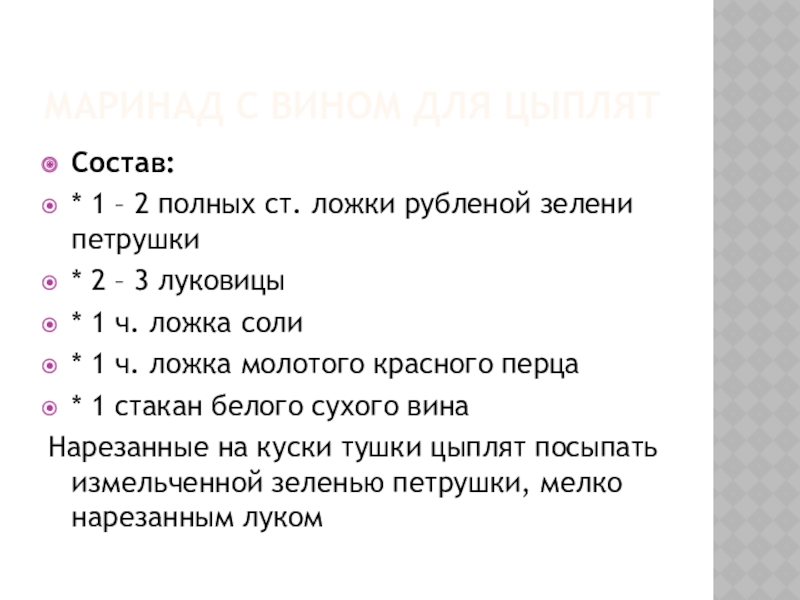 Слайд 10Маринад с вином для цыплят