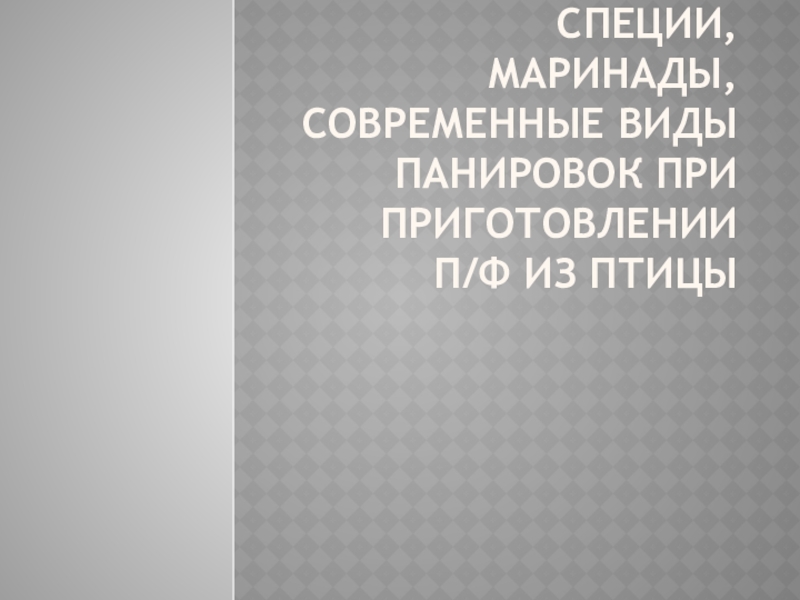 Слайд 1Специи, маринады,современные виды панировок при приготовлении п/ф из птицы