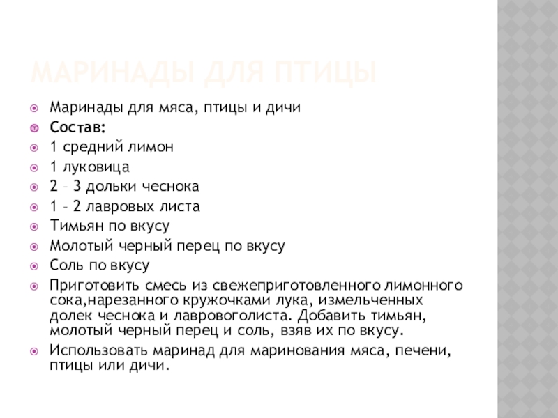 Слайд 8Маринады для птицы