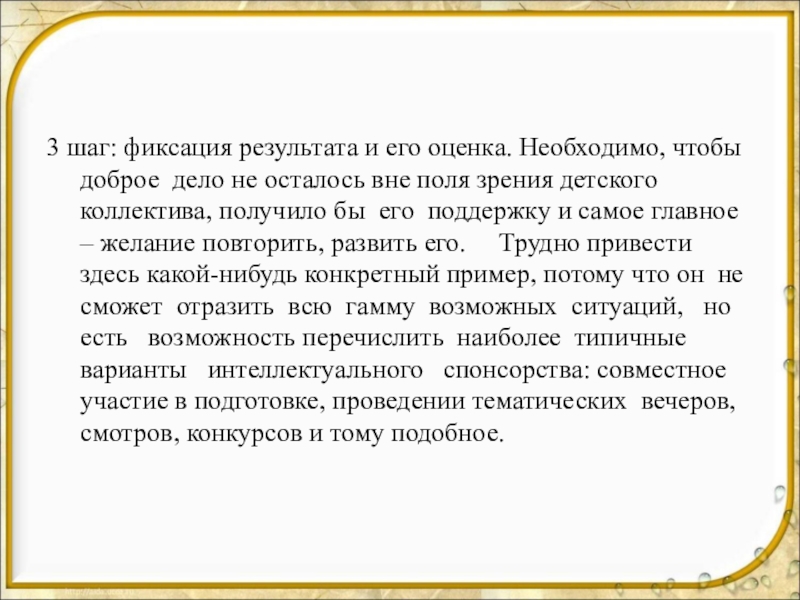 3 шаг: фиксация результата и его оценка. Необходимо, чтобы доброе дело