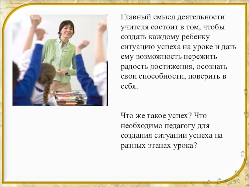 Что же такое успех? Что необходимо педагогу для создания ситуации успеха на разных этапах урока?