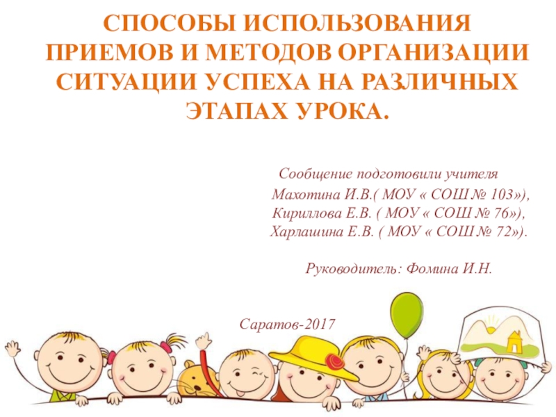 Слайд 1СПОСОБЫ ИСПОЛЬЗОВАНИЯ ПРИЕМОВ И МЕТОДОВ ОРГАНИЗАЦИИ СИТУАЦИИ УСПЕХА НА РАЗЛИЧНЫХ ЭТАПАХ
