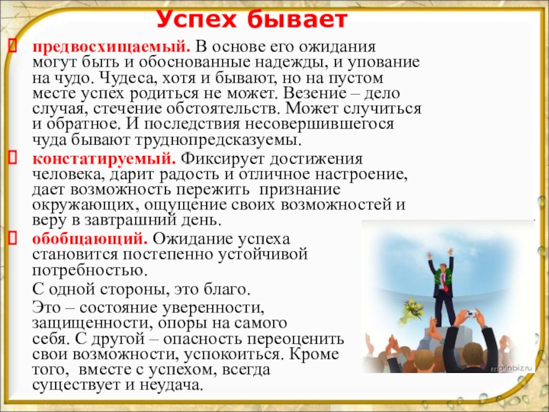 Слайд 6С психологической точки зрения успех – это переживание состояния радости, удовлетворение