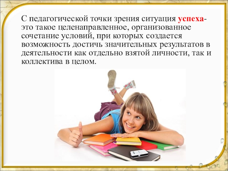 Слайд 7С педагогической точки зрения ситуация успеха-это такое целенаправленное, организованное сочетание условий,