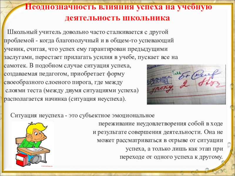Слайд 35 Неоднозначность влияния успеха на учебную деятельность школьника