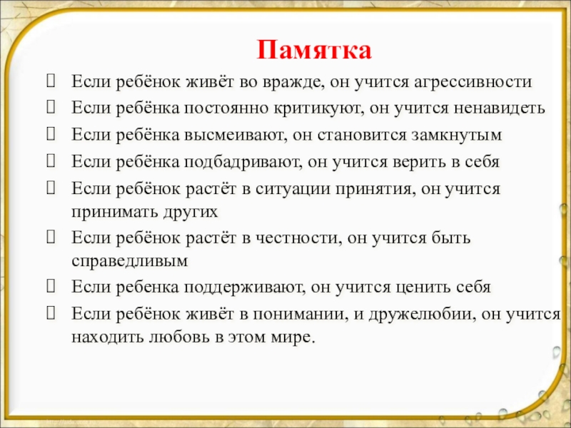 Слайд 39Если ребёнок живёт во вражде, он учится агрессивности