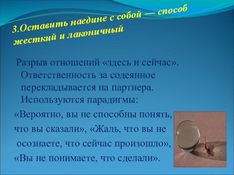 Слайд 123.Оставить наедине с собой — способ жесткий и лаконичный