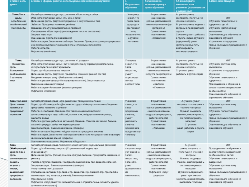 Цель обучения: внедрение семи модулей в серию последовательных уроков