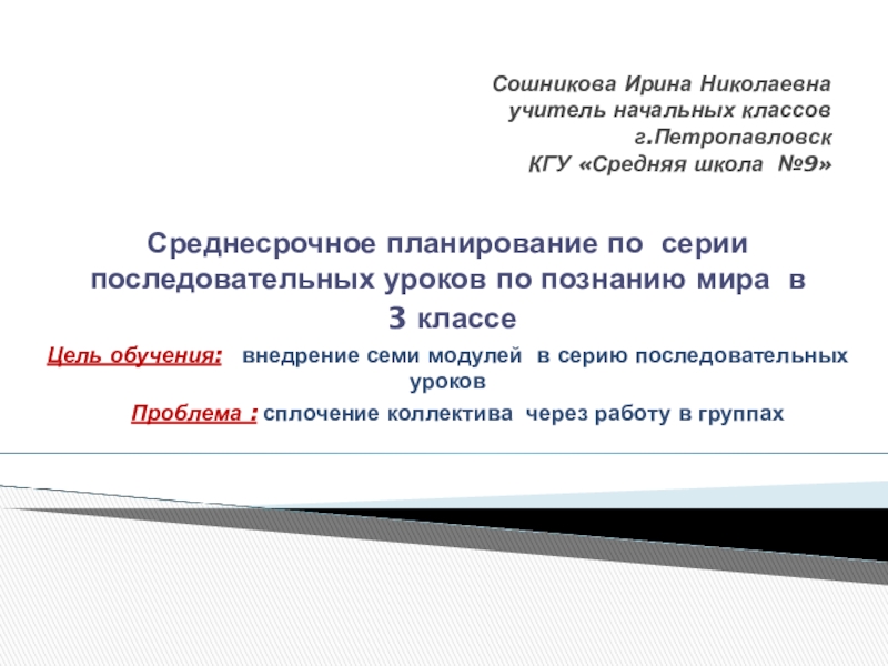 Среднесрочное планирование по серии последовательных уроков по познанию мира в