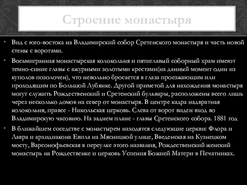 Строение монастыря