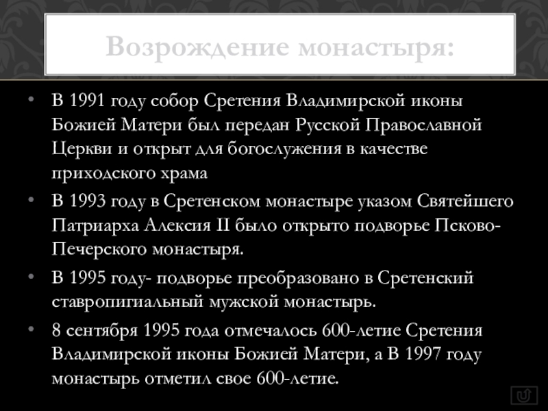 Возрождение монастыря: