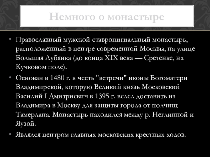 Немного о монастыре