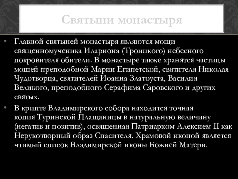 Святыни монастыря