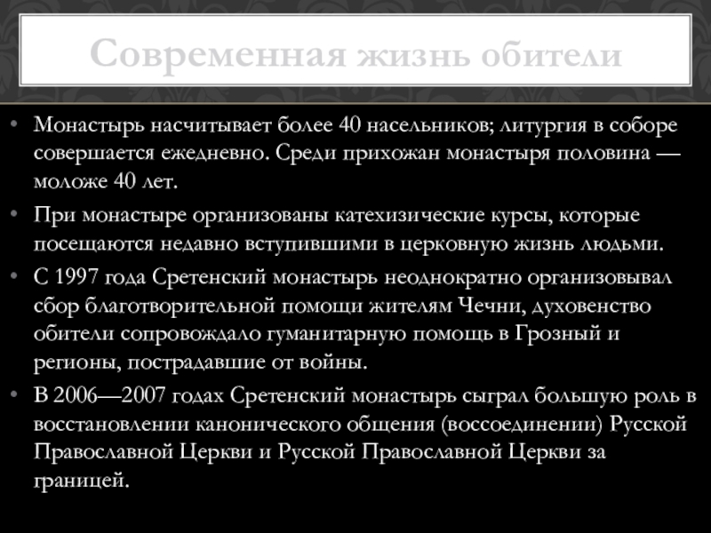 Современная жизнь обители