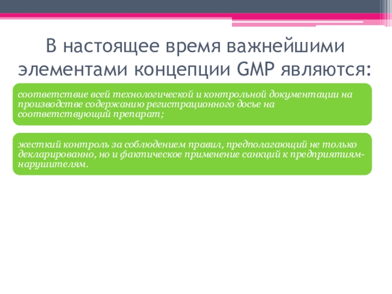 Слайд 6В настоящее время важнейшими элементами концепции GMP являются: