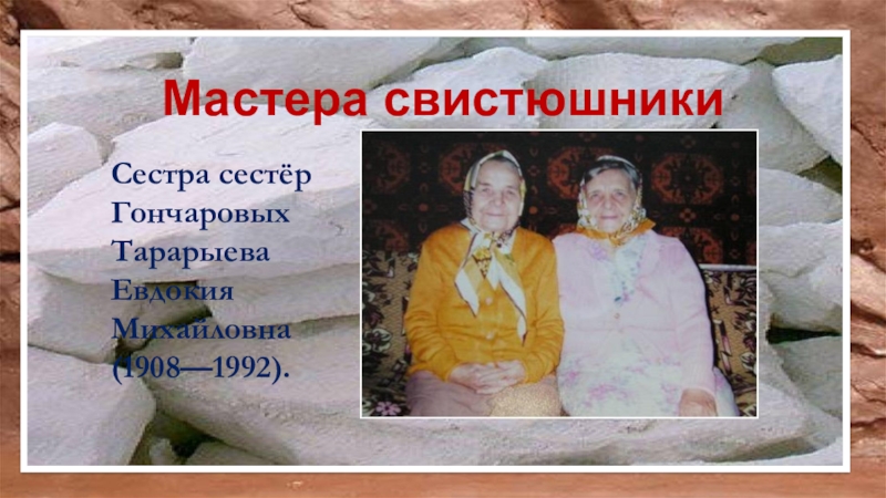 Мастера свистюлишники Анастасия Павловна           ГончароваЕвдокия Михайловна Тарарыева