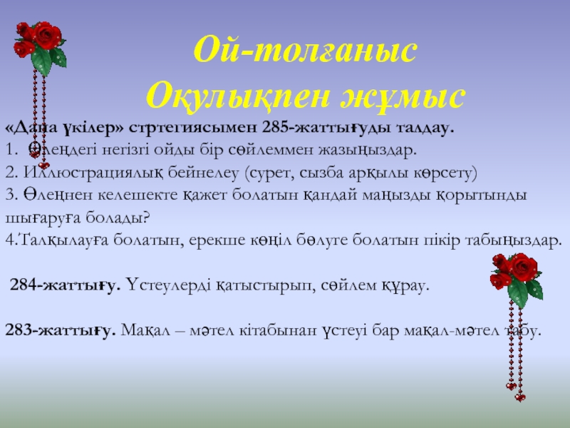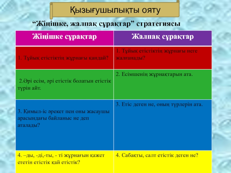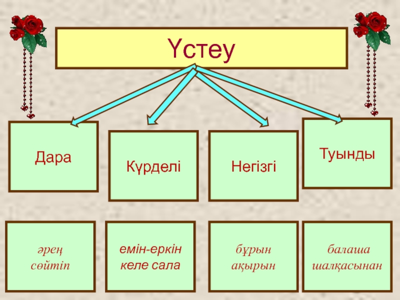 Сөйледі, отырды, күлді, жүрді, келді, үйренді, сөйледі
