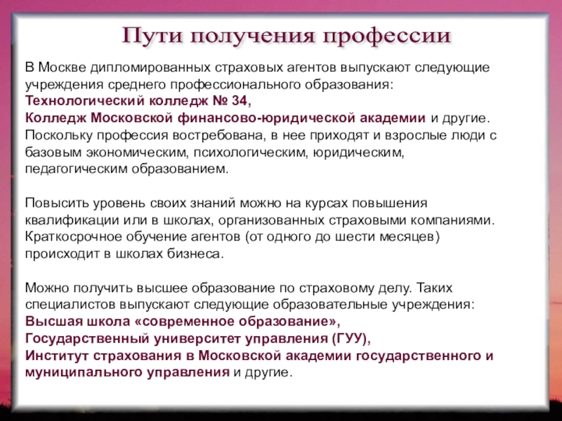 Профессия страхового агента является перспективной и востребованной на рынке труда Москвы.