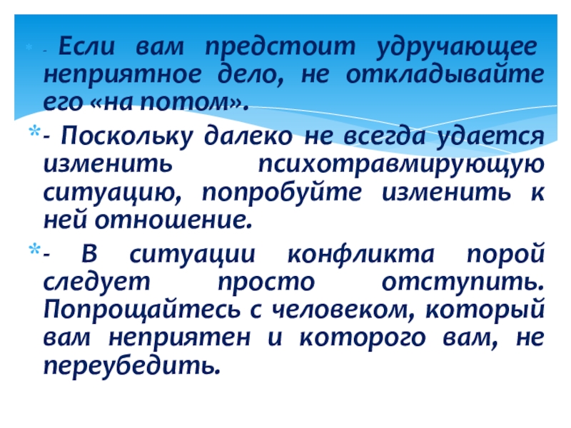 Слайд 13- Если вам предстоит удручающее неприятное дело, не откладывайте его «на