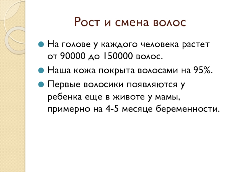 Слайд 13На голове насчитывается от 8О до 120 тысяч терминальных волос, создающих
