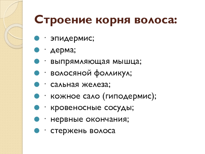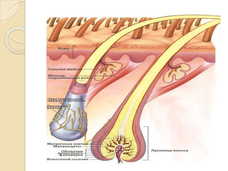 Слайд 30Рост волоса происходит за счет деления матрицы. Это зона молодых, только