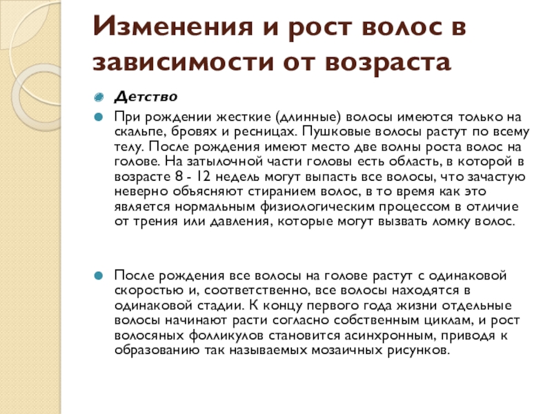 Слайд 23Изменения и рост волос в зависимости от возраста