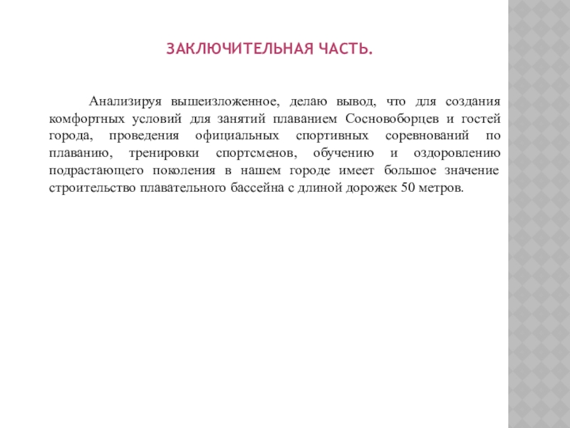 Тема: «Необходимость строительства плавательного бассейна с длиной дорожек 50
