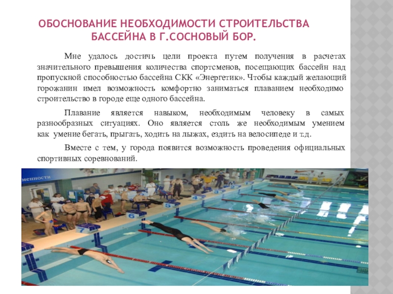 Слайд 9Обоснование необходимости строительства бассейна в г.Сосновый Бор.
