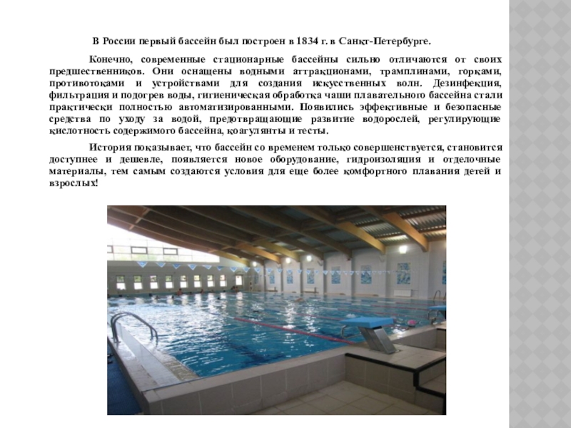 Слайд 5 В России первый бассейн был построен в 1834 г. в