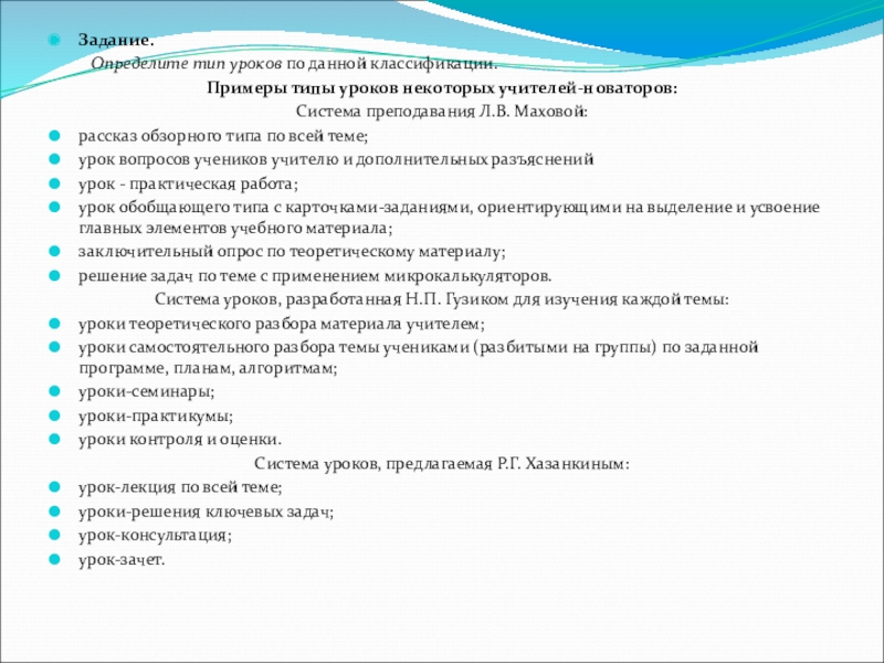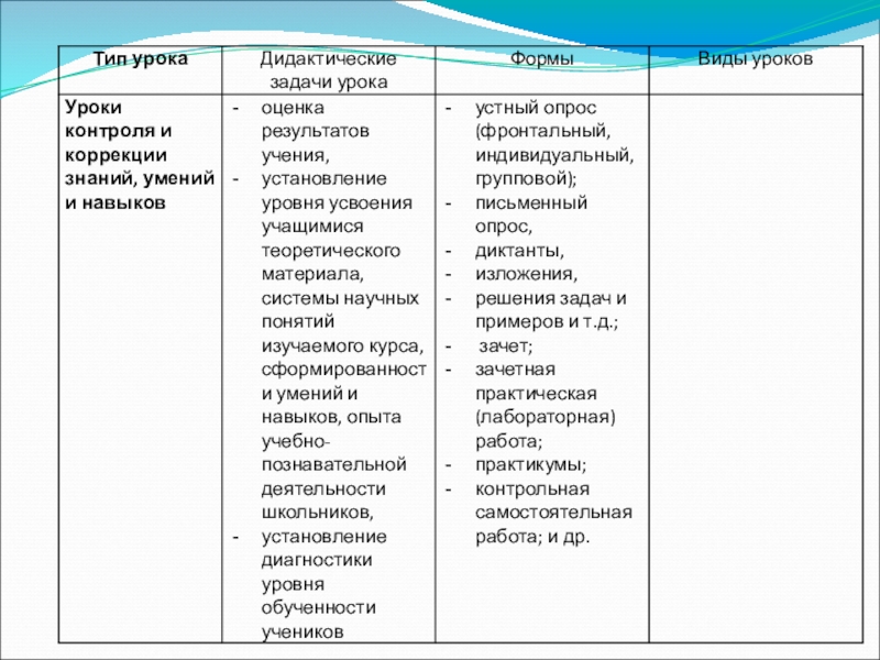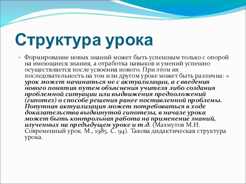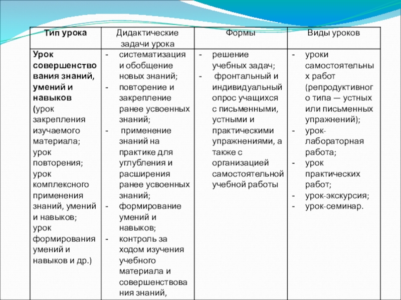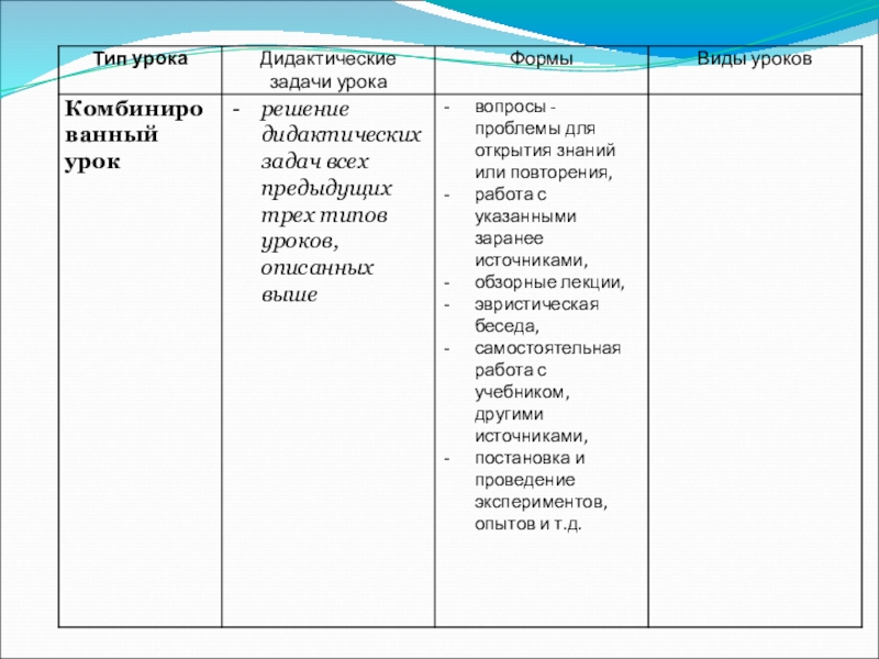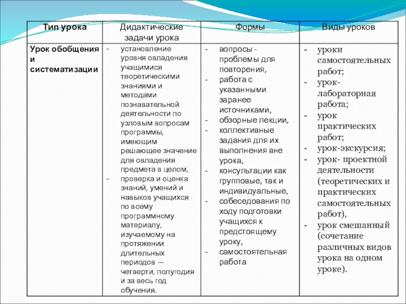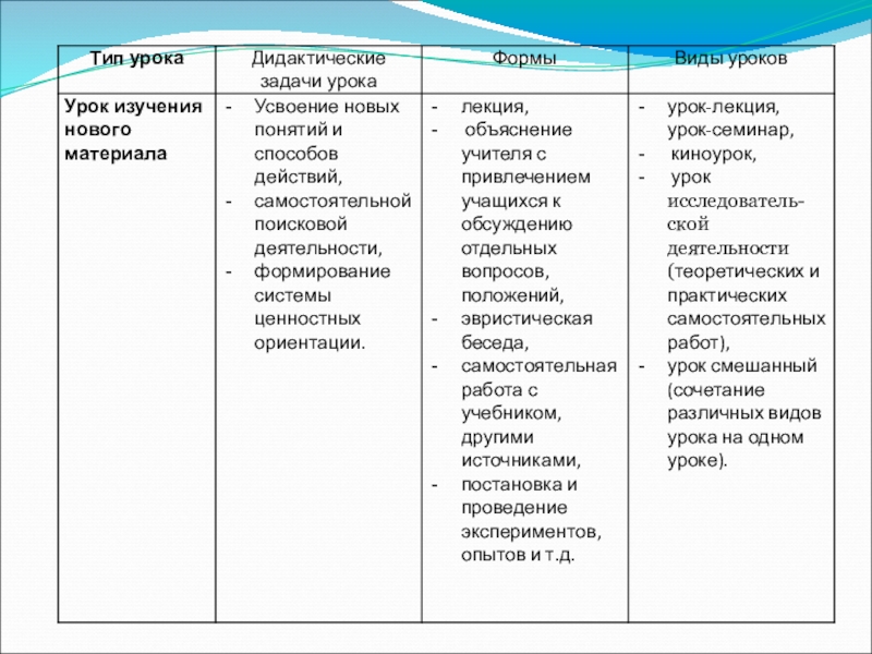 Объясните постановку задач каждого этапа и выбора методов и форм обучения. Определите тип урока.