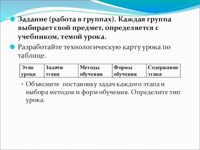 Слайд 54Задание (работа в группах). Каждая группа выбирает свой предмет, определяется с