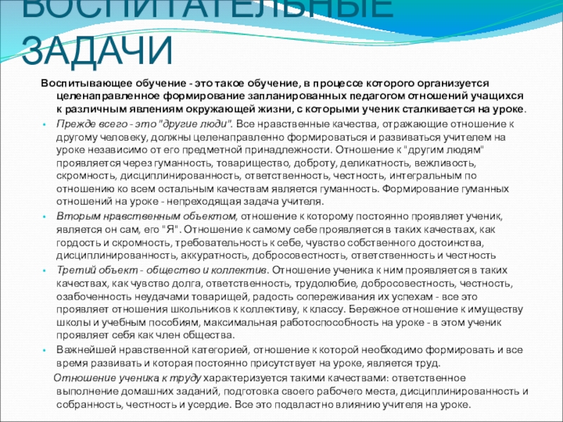 научить каждого ученика самостоятельно добывать знания. Учить чему-нибудь других значит показать им, что они должны делать, чтобы научиться тому, чему их учат!