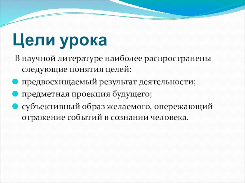 субъективный образ желаемого, опережающий отражение событий в сознании человека.