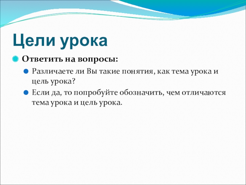 Если да, то попробуйте обозначить, чем отличаются тема урока и цель урока.