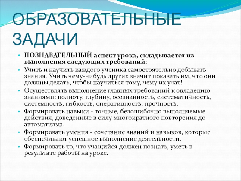 Слайд 21ОБРАЗОВАТЕЛЬНЫЕ ЗАДАЧИ