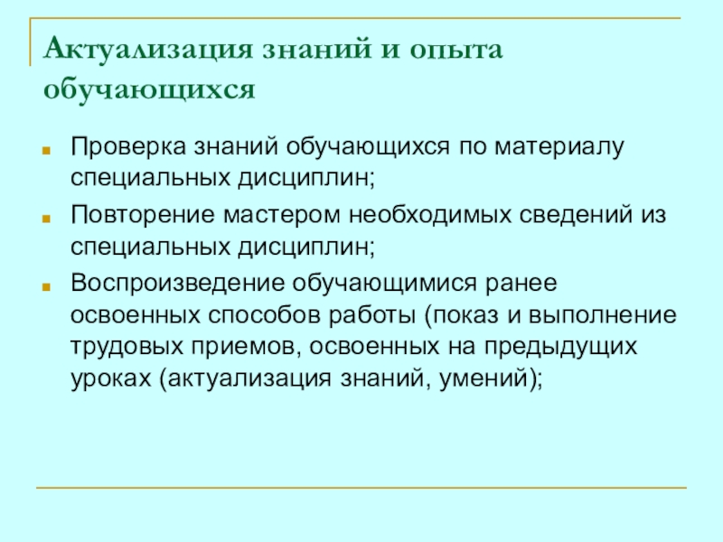 актуализация знаний и опыта обучающихся