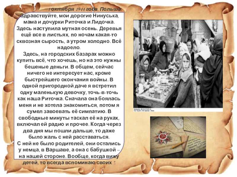 С ней не было родителей, они остались у немца, в Варшаве, а она с бабушкой – на нашей стороне. Вообще, когда вижу детей, то всегда вспоминаю своих ".