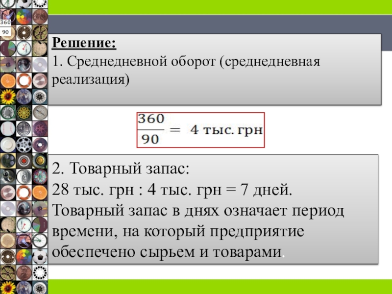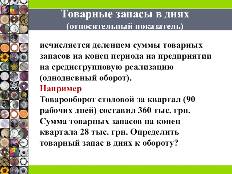 Для определения фактических запасов сырья и товаров в днях оборота сумму среднего товарного запаса нужно разделить на однодневный товарооборот.