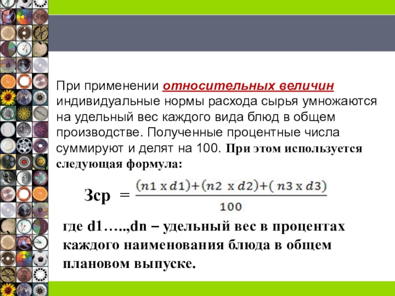 где d1…..,dn – удельный вес в процентах каждого наименования блюда в общем плановом выпуске.