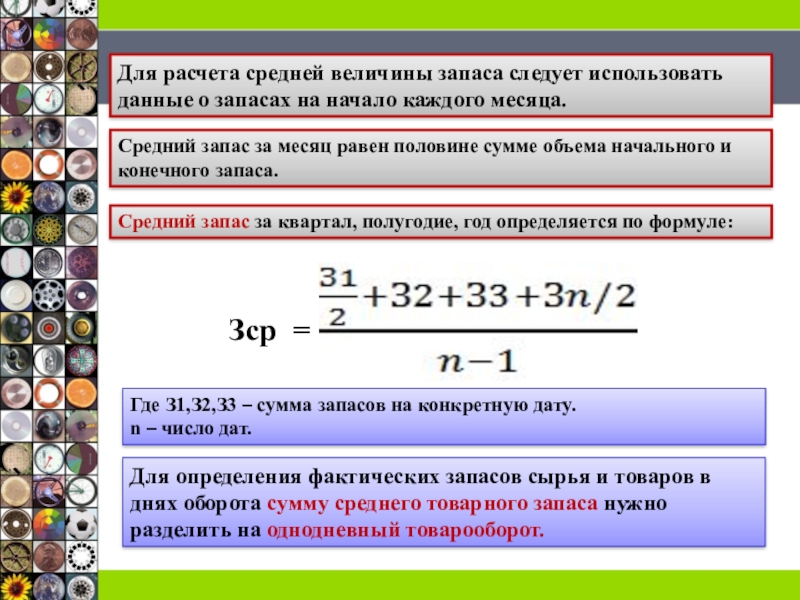 Средний запас за квартал, полугодие, год определяется по формуле: